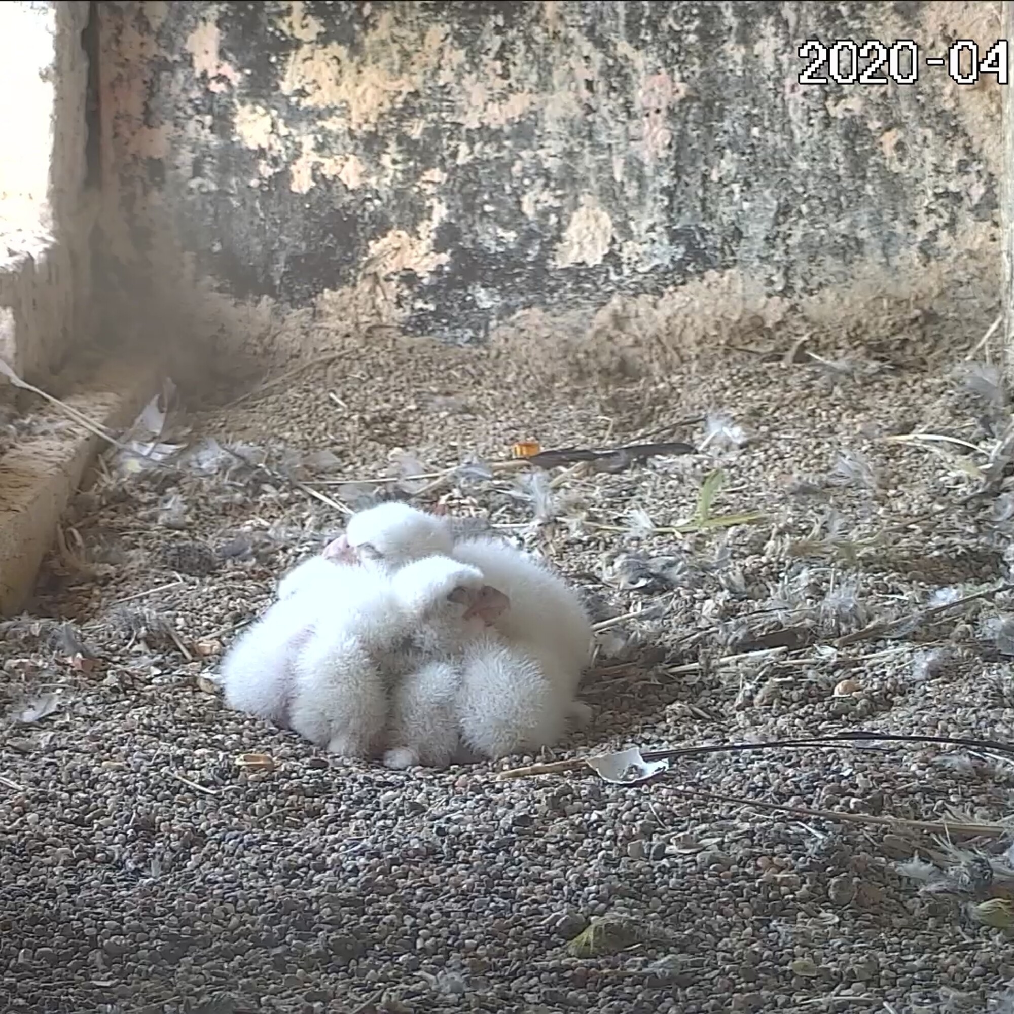 La famille de Faucons pèlerins installée dans le clocher de l’église Saint Job d‘Uccle compte maintenant quatre fauconneaux. Tous les œufs ont donc éclos. Il se sera écoulé 36 heures entre l’apparition du premier et du dernier poussin. C’est un délai classique, qui s’explique par le fait que, chez le Faucon pèlerin, l’incubation commence normalement à la ponte de l’avant-dernier œuf.